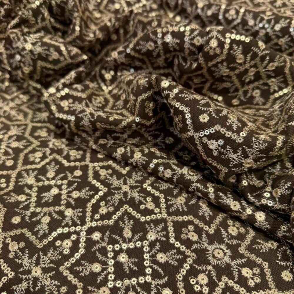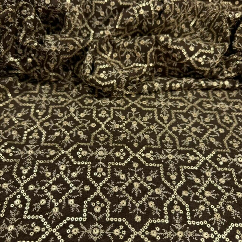 Cor: Marrom / Bordados em Dourado e Cru
