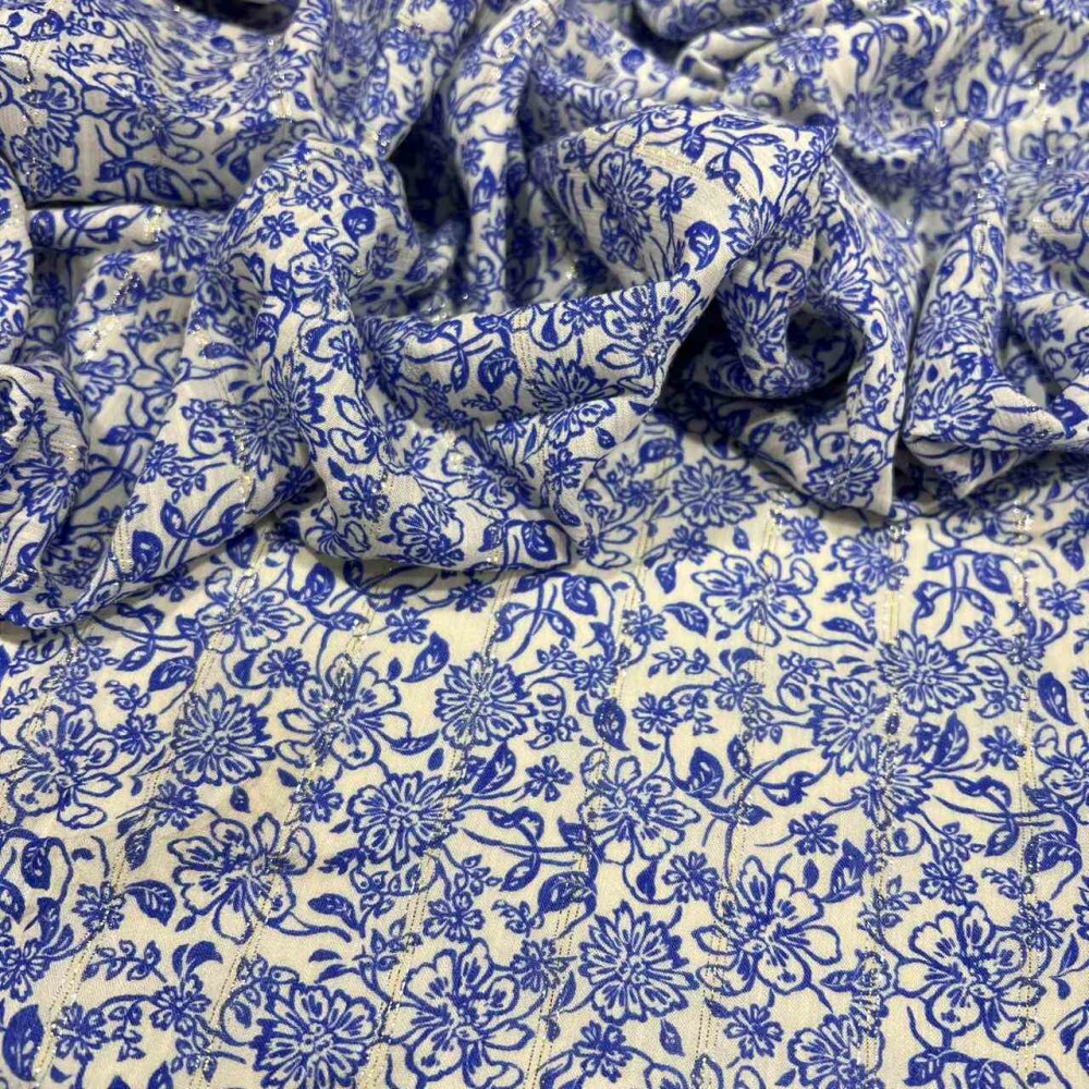 - Modelo: VISCOSE FLORAL AZUL - FILETADO DE LUREX